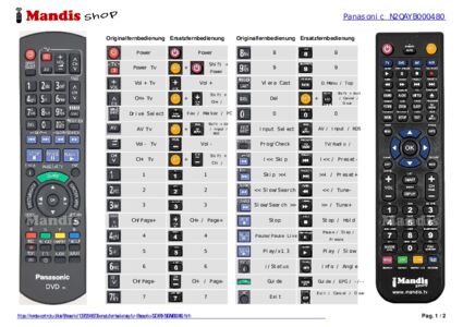 Diese Fernbedienung ersetzt Ihre DVD IR6 (N2QAYB000480) in vollem Umfang und bietet alle Funktionen des Originals.