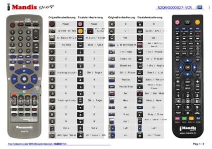 Im Folgenden zeigen wir Ihnen die Zuordnung jedes einzelnen Knopfes der Originalfernbedienung zu der Taste, die dieselbe Funktion auf der Ersatzfernbedienung ausführt. In einigen Fällen müssen Sie möglicherweise die UMSCHALT-Taste drücken, bevor Sie eine andere Taste drücken, um bestimmte Aktionen auszuführen. Diese zusätzlichen Funktionen werden oft wenig genutzt und dienen dazu, das Verständnis der Ersatzfernbedienung zu erleichtern oder weil die Originalfernbedienung mehr Tasten hat als das entsprechende Modell.