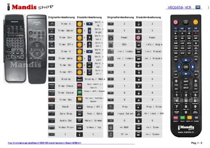 Diese Fernbedienung ersetzt Ihre VEQ1694 in vollem Umfang und bietet alle Funktionen des Originals.