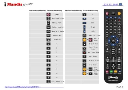 Ein Dokument ist enthalten, um die Verwendung der neuen Fernbedienung zu erleichtern, indem es die Tastenbelegung zeigt.