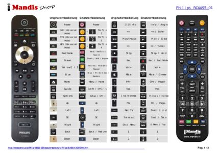 Diese Fernbedienung ersetzt Ihre RC 4495 / 01 (312814721441) in vollem Umfang und bietet alle Funktionen des Originals.