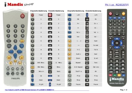 Ein Dokument ist enthalten, um die Verwendung der neuen Fernbedienung zu erleichtern, indem es die Tastenbelegung zeigt.
