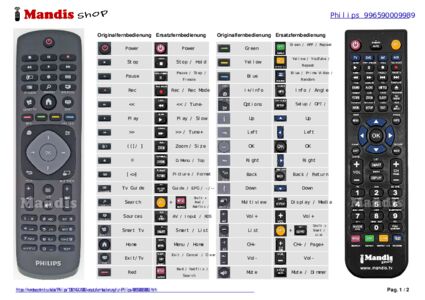 Ein Dokument ist enthalten, um die Verwendung der neuen Fernbedienung zu erleichtern, indem es die Tastenbelegung zeigt.
