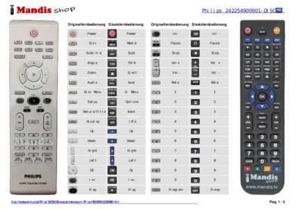 Ein Dokument ist enthalten, um die Verwendung der neuen Fernbedienung zu erleichtern, indem es die Tastenbelegung zeigt.