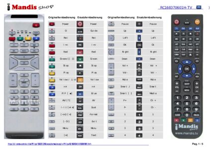 Diese Fernbedienung ersetzt Ihre RC 1683706 / 01 (313923813961) in vollem Umfang und bietet alle Funktionen des Originals.