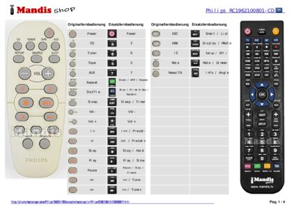 Ein Dokument ist enthalten, um die Verwendung der neuen Fernbedienung zu erleichtern, indem es die Tastenbelegung zeigt.