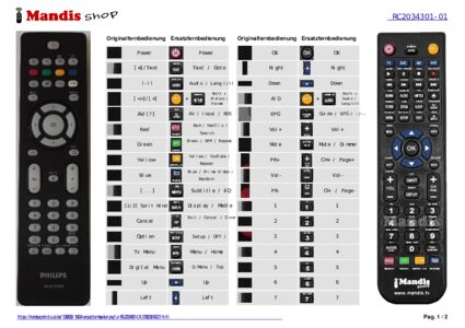 Ein Dokument ist enthalten, um die Verwendung der neuen Fernbedienung zu erleichtern, indem es die Tastenbelegung zeigt.
