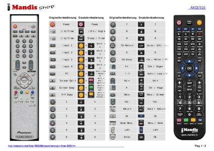 Diese Fernbedienung ersetzt die meisten Funktionen Ihres AXD1510. Es ist keine Universalfernbedienung, sondern eine Kopie mit den meisten Tasten und Funktionen Ihres Originals.