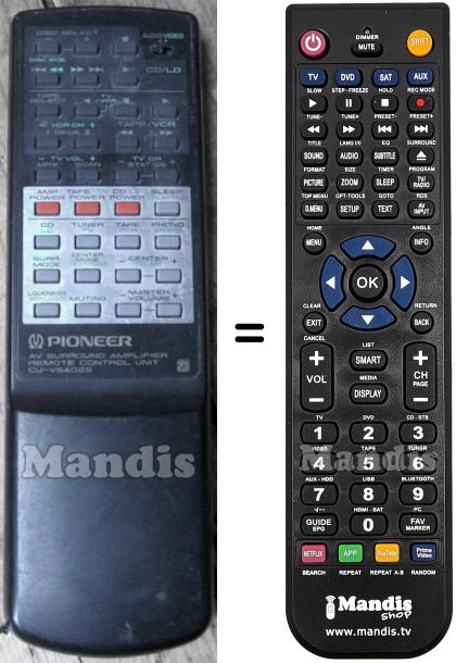 Home > Marken > Fernbedienungen Pioneer > Fernbedienung für PIONEER CU-VSA025