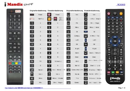 Diese Fernbedienung ersetzt Ihre RC4848 in vollem Umfang und bietet alle Funktionen des Originals.
