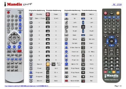 Ein Dokument ist enthalten, um die Verwendung der neuen Fernbedienung zu erleichtern, indem es die Tastenbelegung zeigt.
