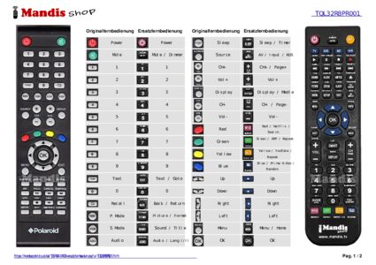 Ein Dokument ist enthalten, um die Verwendung der neuen Fernbedienung zu erleichtern, indem es die Tastenbelegung zeigt.