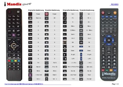 Ein Dokument ist enthalten, um die Verwendung der neuen Fernbedienung zu erleichtern, indem es die Tastenbelegung zeigt.