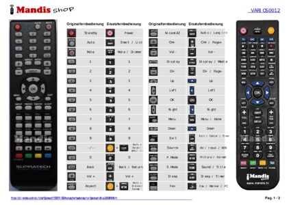 Ein Dokument ist enthalten, um die Verwendung der neuen Fernbedienung zu erleichtern, indem es die Tastenbelegung zeigt.