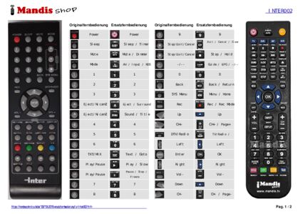 Ein Dokument ist enthalten, um die Verwendung der neuen Fernbedienung zu erleichtern, indem es die Tastenbelegung zeigt.