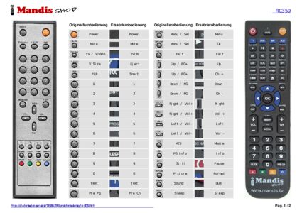 Ein Dokument ist enthalten, um die Verwendung der neuen Fernbedienung zu erleichtern, indem es die Tastenbelegung zeigt.