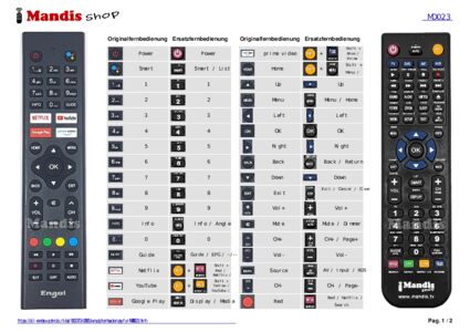 Ein Dokument ist enthalten, um die Verwendung der neuen Fernbedienung zu erleichtern, indem es die Tastenbelegung zeigt.