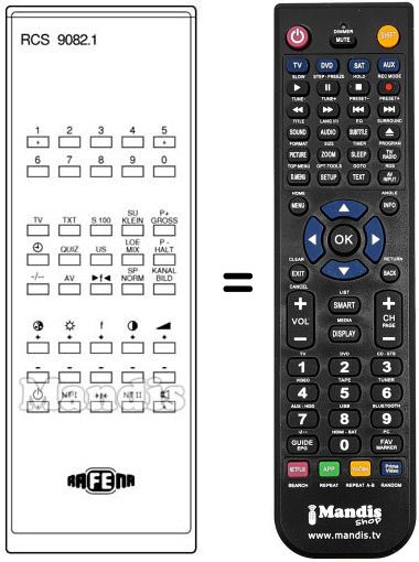 Fernbedienung, die das Original und die Gesamtheit seiner Funktionen, vollständig ersetzt.