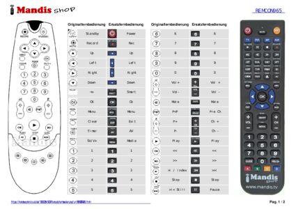 Ein Dokument ist enthalten, um die Verwendung der neuen Fernbedienung zu erleichtern, indem es die Tastenbelegung zeigt.