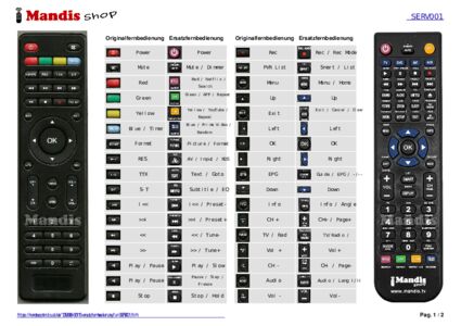 Ein Dokument ist enthalten, um die Verwendung der neuen Fernbedienung zu erleichtern, indem es die Tastenbelegung zeigt.