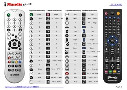 Ein Dokument ist enthalten, um die Verwendung der neuen Fernbedienung zu erleichtern, indem es die Tastenbelegung zeigt.