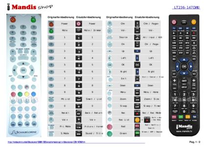 Ein Dokument ist enthalten, um die Verwendung der neuen Fernbedienung zu erleichtern, indem es die Tastenbelegung zeigt.