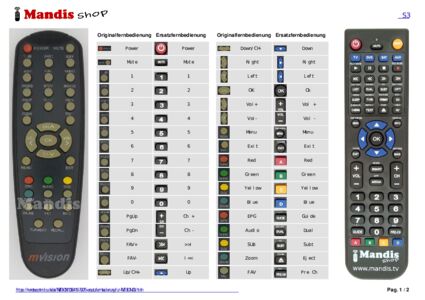 Ein Dokument ist enthalten, um die Verwendung der neuen Fernbedienung zu erleichtern, indem es die Tastenbelegung zeigt.