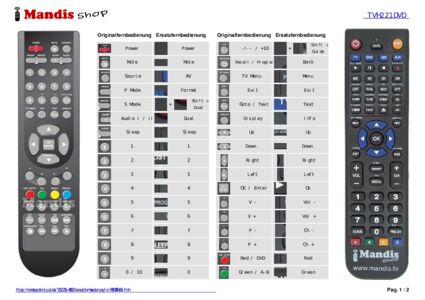 Ein Dokument ist enthalten, um die Verwendung der neuen Fernbedienung zu erleichtern, indem es die Tastenbelegung zeigt.