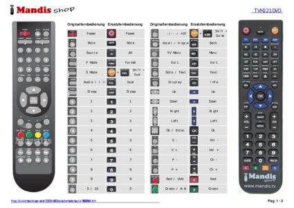 Ein Dokument ist enthalten, um die Verwendung der neuen Fernbedienung zu erleichtern, indem es die Tastenbelegung zeigt.