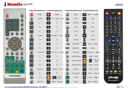 Ein Dokument ist enthalten, um die Verwendung der neuen Fernbedienung zu erleichtern, indem es die Tastenbelegung zeigt.
