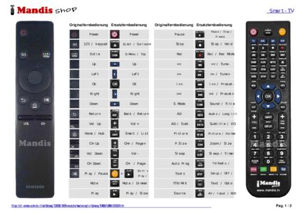 Ein Dokument ist enthalten, um die Verwendung der neuen Fernbedienung zu erleichtern, indem es die Tastenbelegung zeigt.