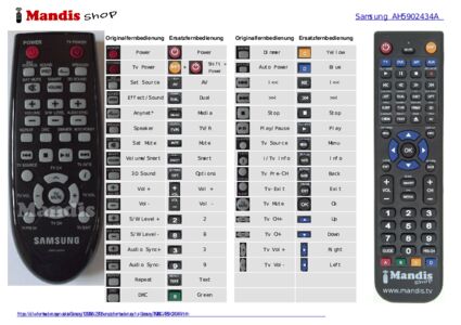 Ein Dokument ist enthalten, um die Verwendung der neuen Fernbedienung zu erleichtern, indem es die Tastenbelegung zeigt.