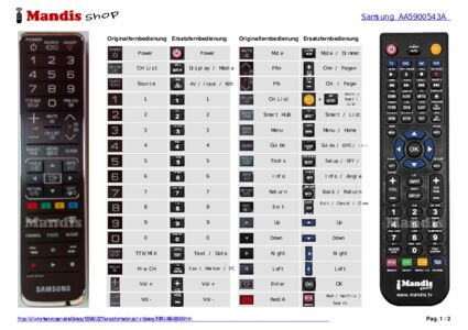 Diese Fernbedienung ersetzt Ihre TM1170 (AA59-00543A) in vollem Umfang und bietet alle Funktionen des Originals.