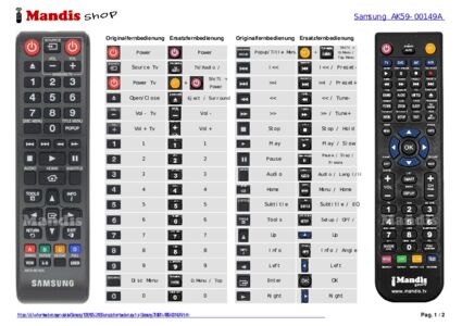 Diese Fernbedienung ersetzt Ihre TM1241 (AK59-00149A) in vollem Umfang und bietet alle Funktionen des Originals.