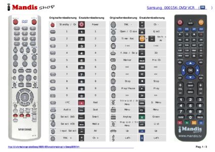 Ein Dokument ist enthalten, um die Verwendung der neuen Fernbedienung zu erleichtern, indem es die Tastenbelegung zeigt.