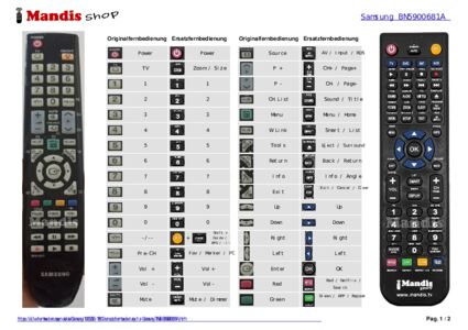 Diese Fernbedienung ersetzt Ihre TM98 (BN5900681A) in vollem Umfang und bietet alle Funktionen des Originals.