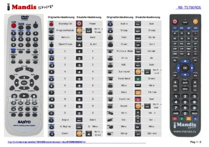 Diese Fernbedienung ersetzt Ihre RB-TS780RDS (6450653469) in vollem Umfang und bietet alle Funktionen des Originals.