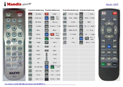 Im Folgenden zeigen wir Ihnen die Zuordnung jedes einzelnen Knopfes der Originalfernbedienung zu der Taste, die dieselbe Funktion auf der Ersatzfernbedienung ausführt. In einigen Fällen müssen Sie möglicherweise die UMSCHALT-Taste drücken, bevor Sie eine andere Taste drücken, um bestimmte Aktionen auszuführen. Diese zusätzlichen Funktionen werden oft wenig genutzt und dienen dazu, das Verständnis der Ersatzfernbedienung zu erleichtern oder weil die Originalfernbedienung mehr Tasten hat als das entsprechende Modell.