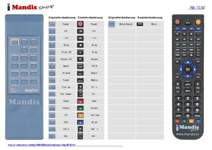 Diese Fernbedienung ersetzt Ihre RB 7150 in vollem Umfang und bietet alle Funktionen des Originals.