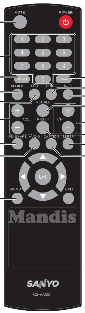 Home > Marken > Fernbedienungen Sanyo > Fernbedienung für Sanyo CS-90283T > Interaktive Tastenbelegung Sanyo CS-90283T