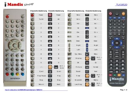 Ein Dokument ist enthalten, um die Verwendung der neuen Fernbedienung zu erleichtern, indem es die Tastenbelegung zeigt.