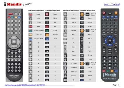 Diese Fernbedienung ersetzt Ihre TVX 19HT in vollem Umfang und bietet alle Funktionen des Originals.