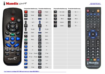 Ein Dokument ist enthalten, um die Verwendung der neuen Fernbedienung zu erleichtern, indem es die Tastenbelegung zeigt.