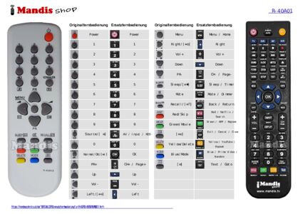 Ein Dokument ist enthalten, um die Verwendung der neuen Fernbedienung zu erleichtern, indem es die Tastenbelegung zeigt.