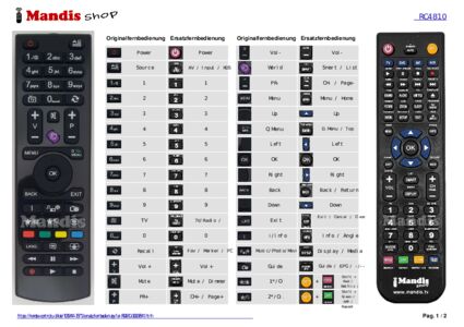 Ein Dokument ist enthalten, um die Verwendung der neuen Fernbedienung zu erleichtern, indem es die Tastenbelegung zeigt.