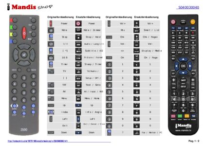Diese Fernbedienung ersetzt Ihre 2500 (S040030040) in vollem Umfang und bietet alle Funktionen des Originals.