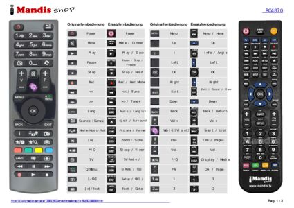 Ein Dokument ist enthalten, um die Verwendung der neuen Fernbedienung zu erleichtern, indem es die Tastenbelegung zeigt.