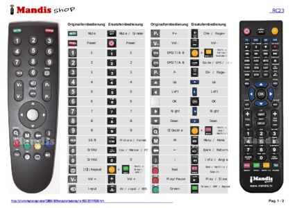 Ein Dokument ist enthalten, um die Verwendung der neuen Fernbedienung zu erleichtern, indem es die Tastenbelegung zeigt.