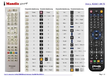 Diese Fernbedienung ersetzt Ihre RC4847 White (23100154) in vollem Umfang und bietet alle Funktionen des Originals.