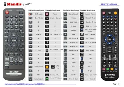 Diese Fernbedienung ersetzt Ihre RRMCGA287AWSA in vollem Umfang und bietet alle Funktionen des Originals.